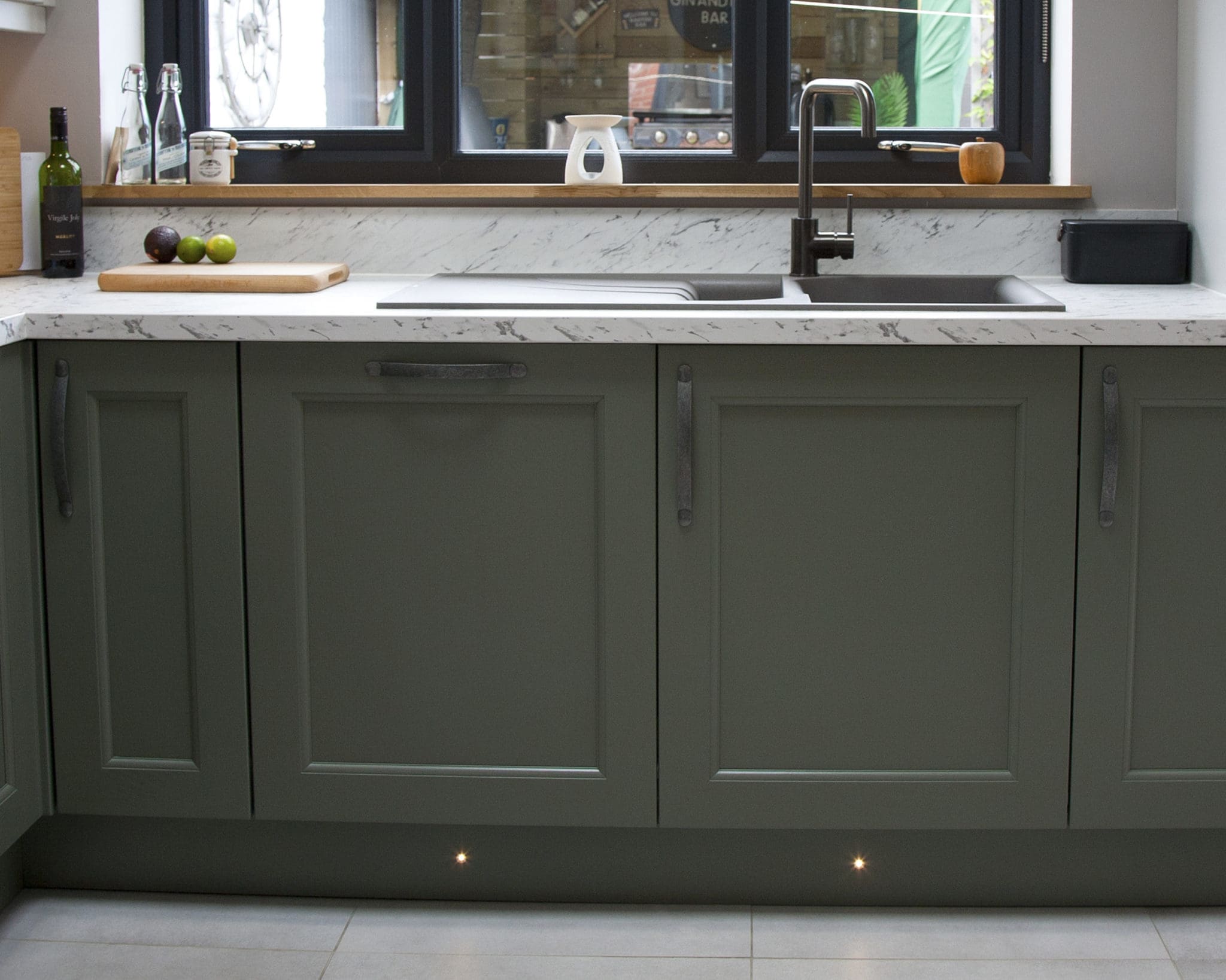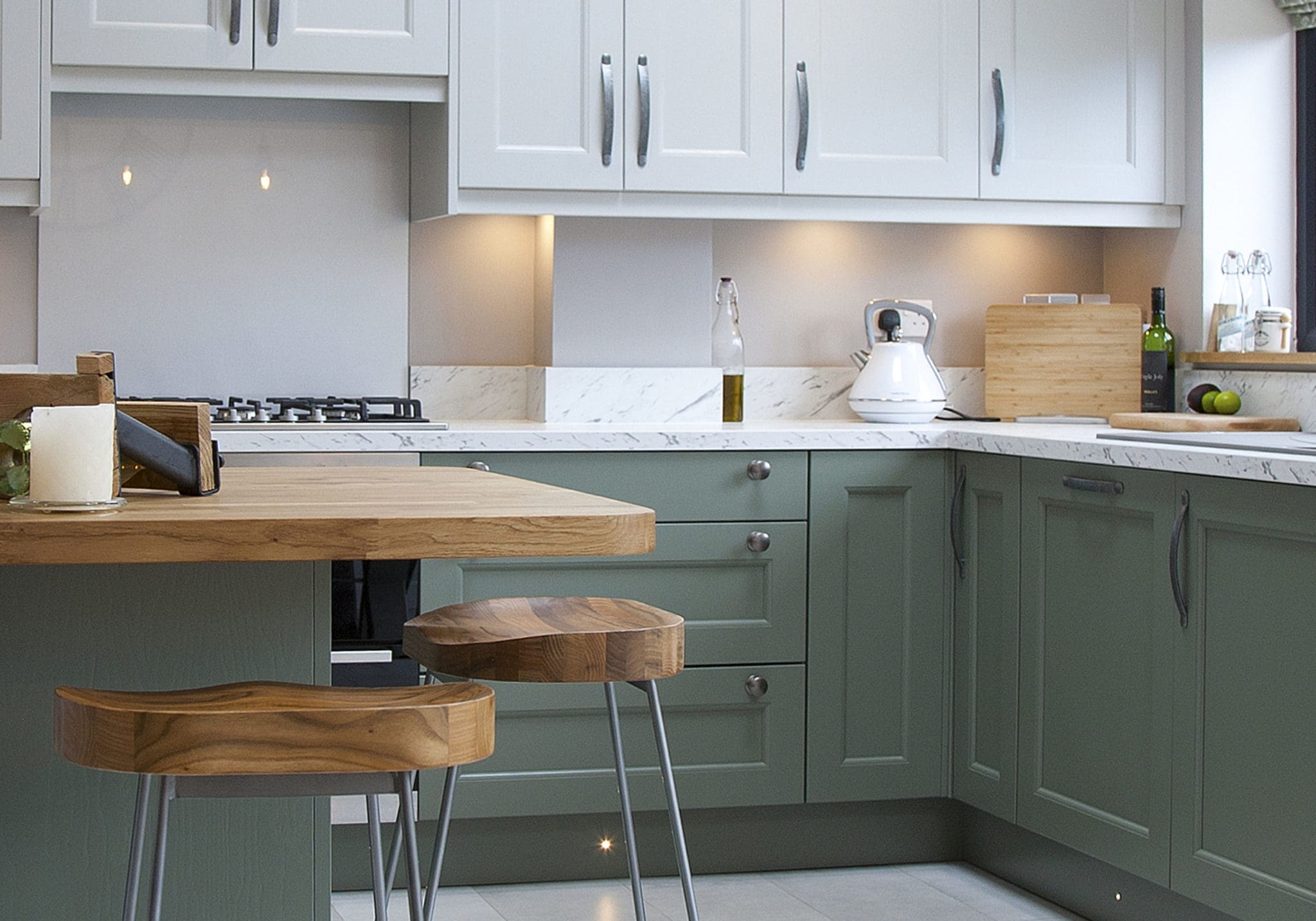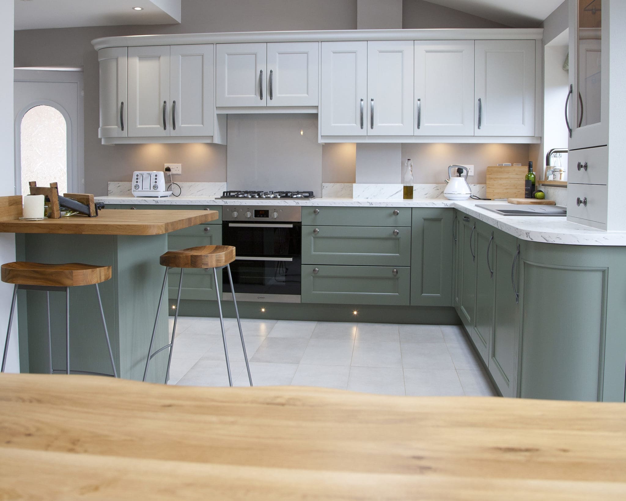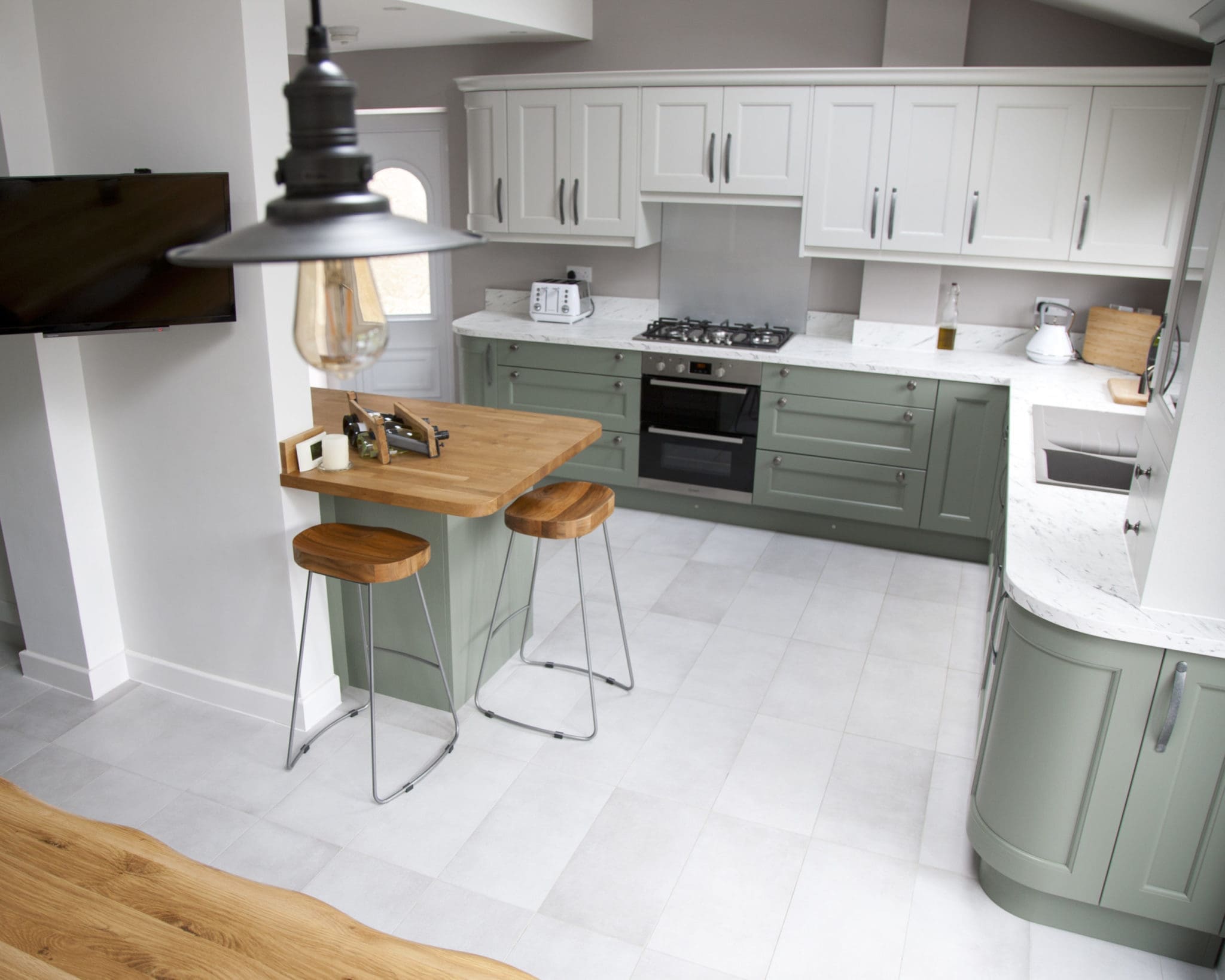 This beaded solid wood shaker door comes in a range of many colours, so when we presented the customer with our colour swatches and door samples, the Regiment Green and Dove Grey stood out immediately from the rest.