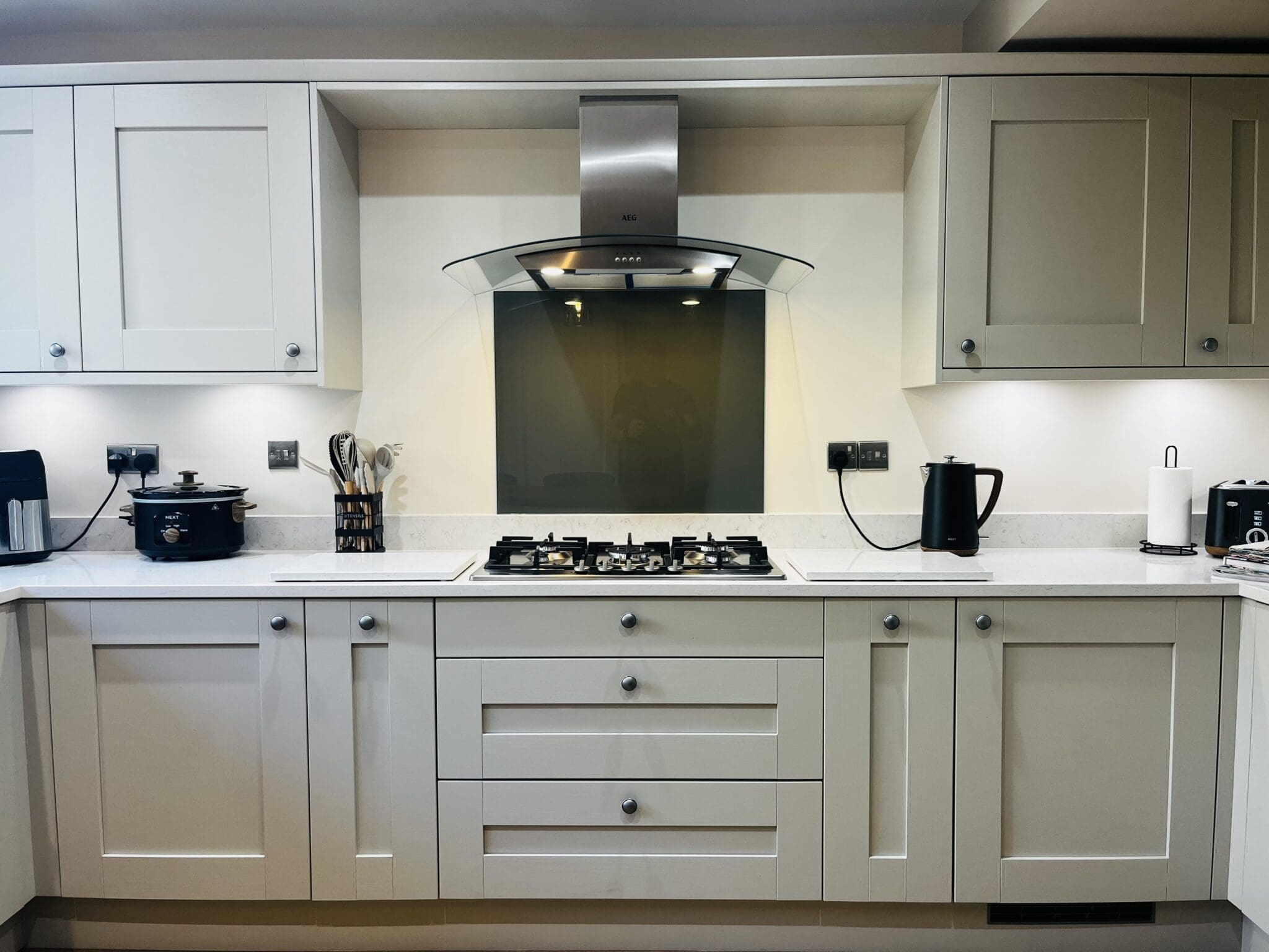 splashback behind in the hob in Mouse Grey.