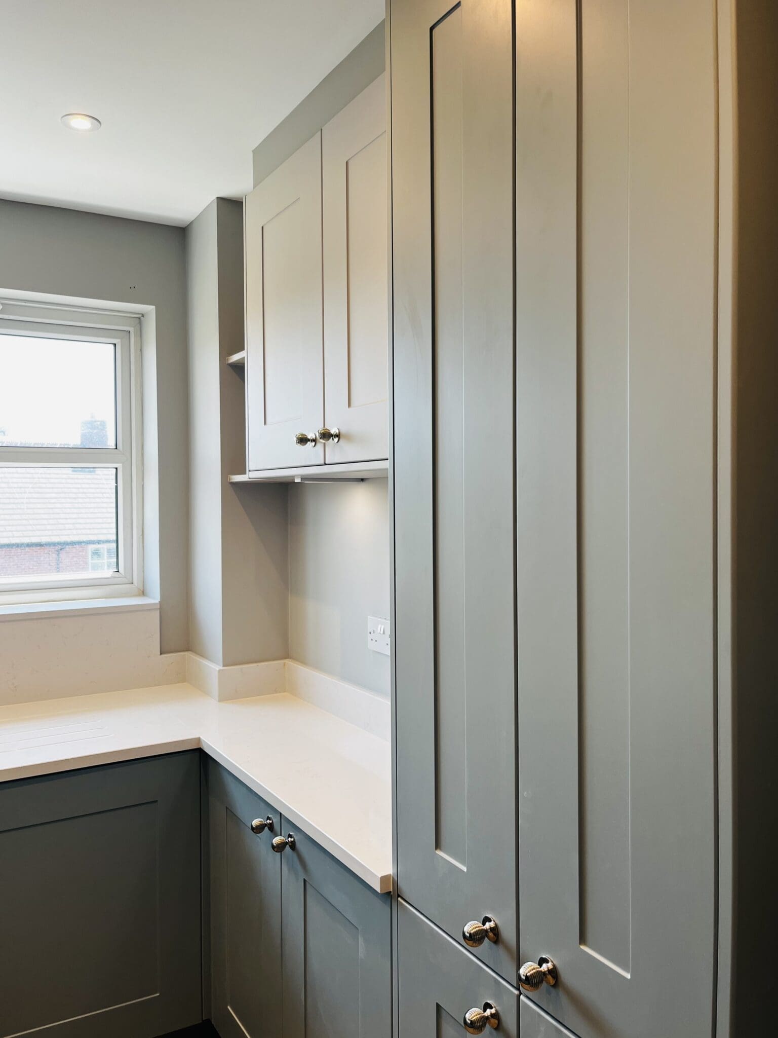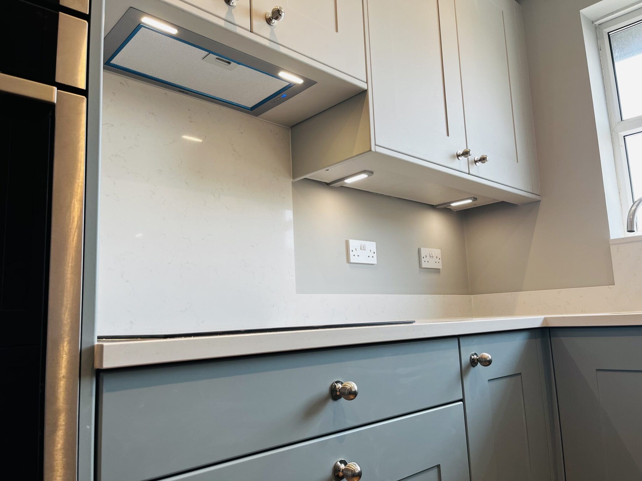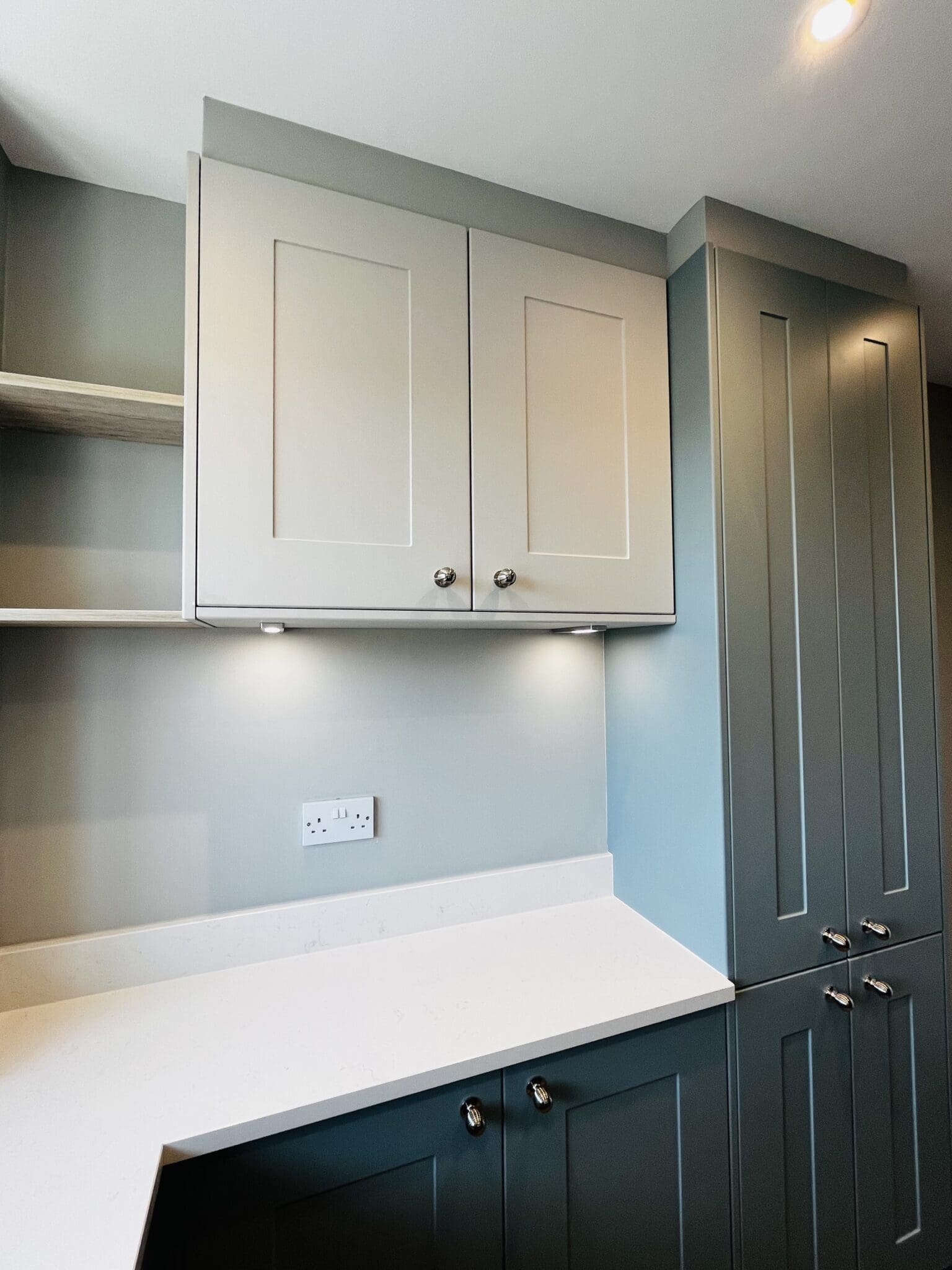 wow factor! A colour combo of Matt Fjord and Dove Grey doors, Silestone in