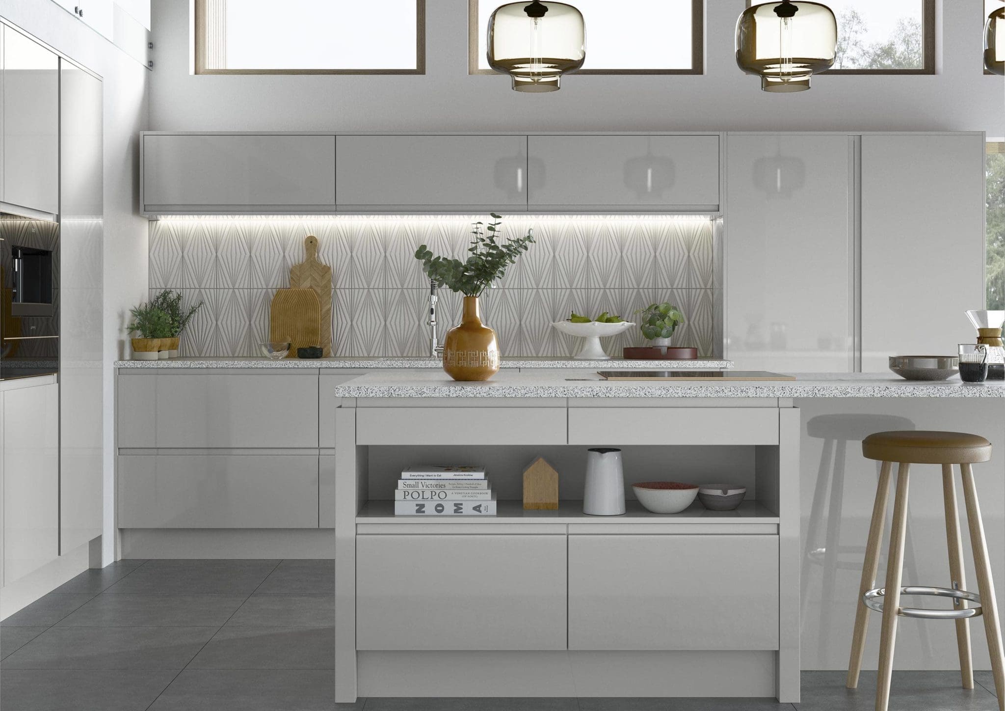 Add a beautiful Strada Gloss Light Grey kitchen to your home with our kitchen design & installation services