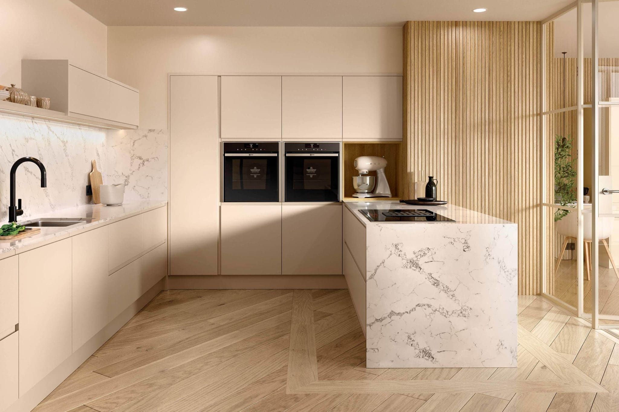 Add a beautiful Strada Matte Cashmere kitchen to your home with our kitchen design & installation services