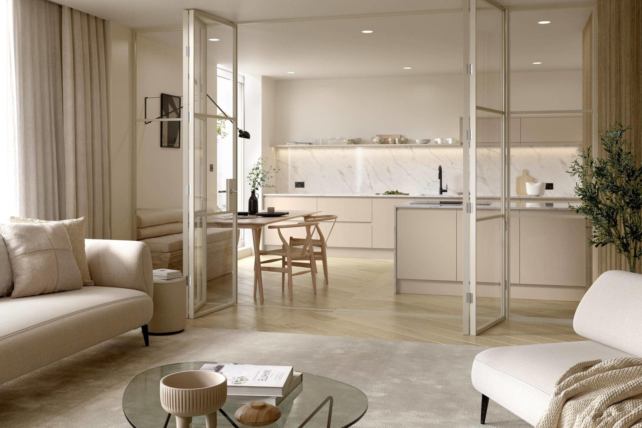 Strada Matte is a slab door with an integrated J handle and an overpainted 22mm MDF core. Strada Matte’s smooth finish lends itself so well to an ultra-modern light and airy space through a combination of soft muted colours and a simple kitchen design layout.