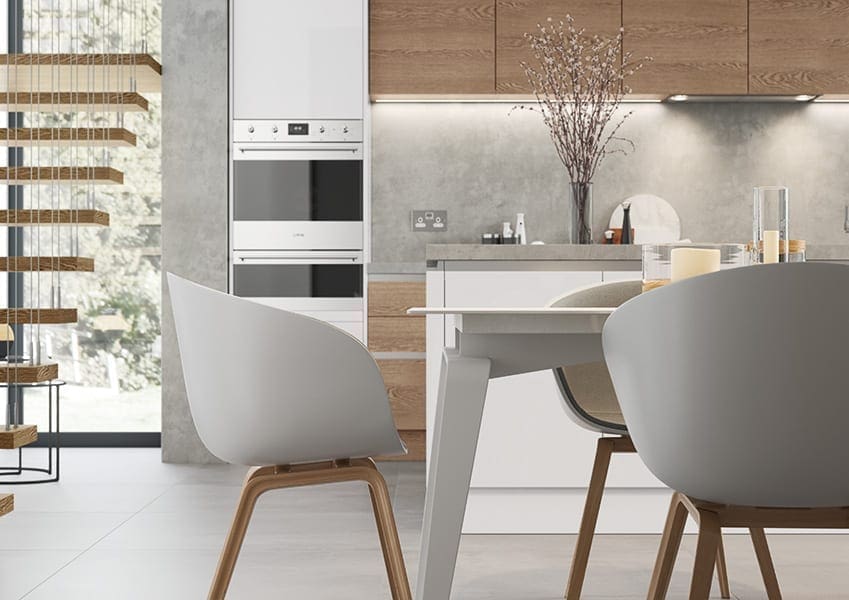 A Zola white gloss and Tavola parched oak kitchen is the ideal kitchen design choice for anybody who’s looking for something sleek and modern.